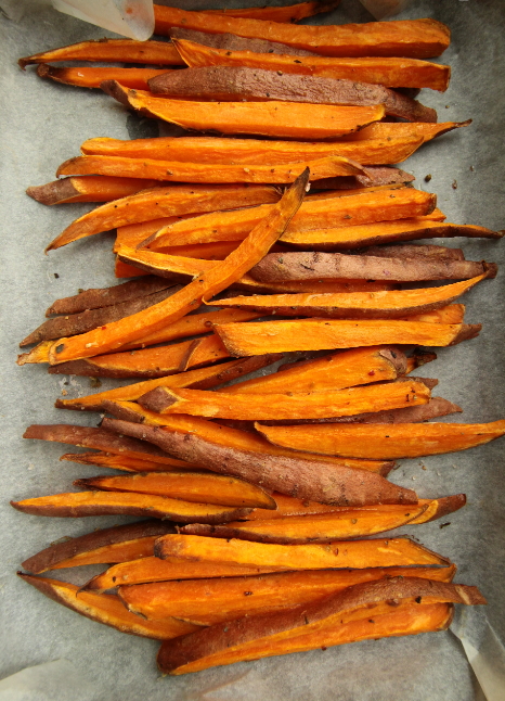 - 로즈메리, 소금, 후추를 고구마에 고루 뿌려주세요.